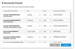 f. Ensure you associate the accounts to the appropriate accounts already listed in Quicken.